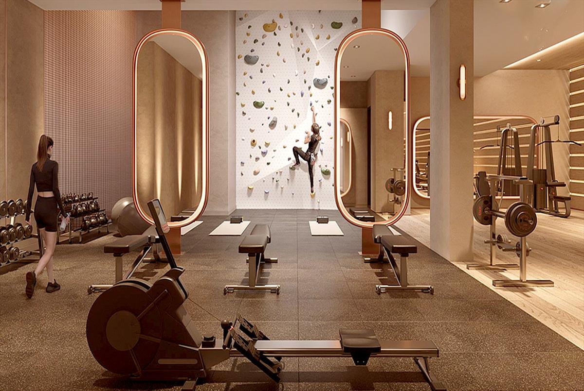 The amenity spaces will contain rooms for weight training, CrossFit, cardio, yoga, and a bouldering wall, this is a new level of wellness in residential design.